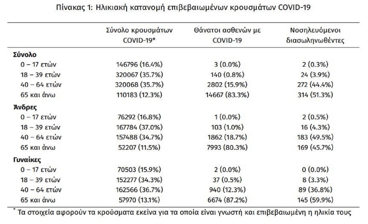 Παράλληλα, ο ΕΟΔΥ ανακοίνωσε την ηλικιακή κατανομή των νέων καταγεγραμμένων κρουσμάτων.