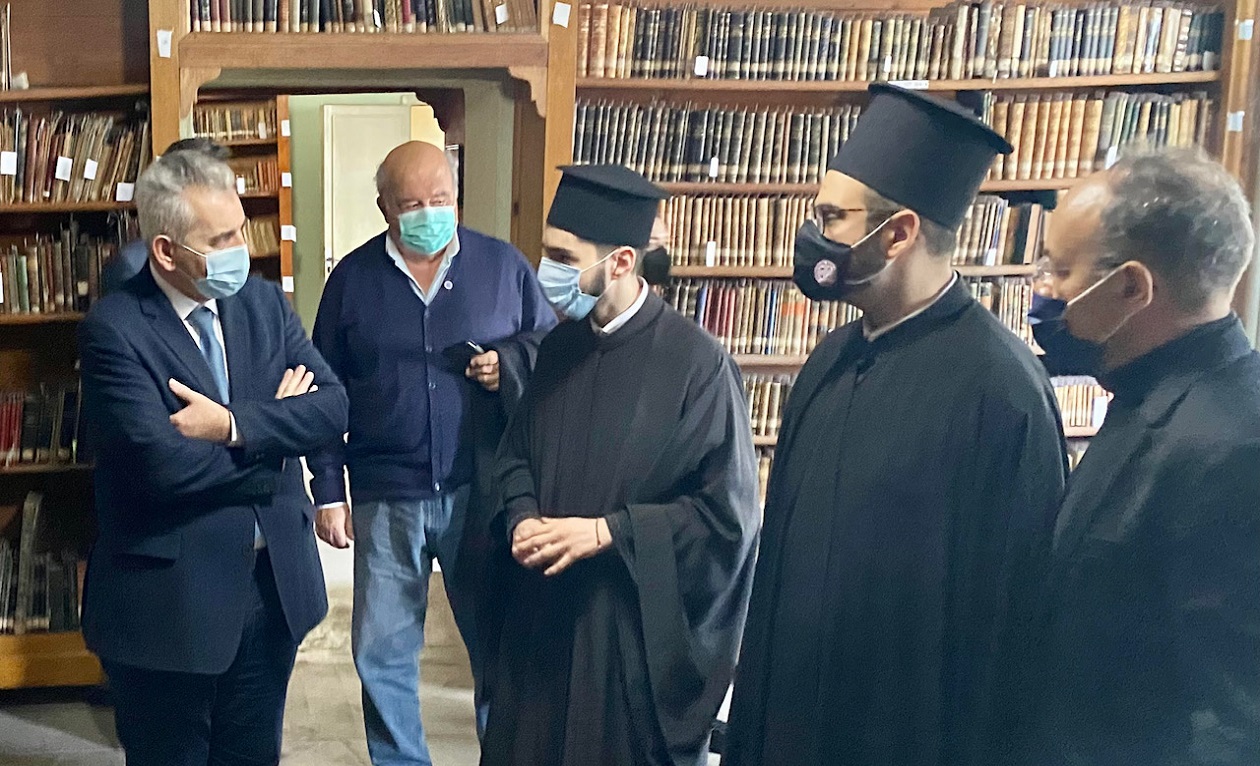 Η αντιπροσωπεία της ΔΣΟ επισκέφθηκε τις εγκαταστάσεις της Θεολογικής Σχολής, και ξεναγήθηκε στην εμβληματική της βιβλιοθήκη, όπου φυλάσσονται παλαίτυπα, με το παλαιότερο, όπως ειπώθηκε, να χρονολογείται από το 1496.