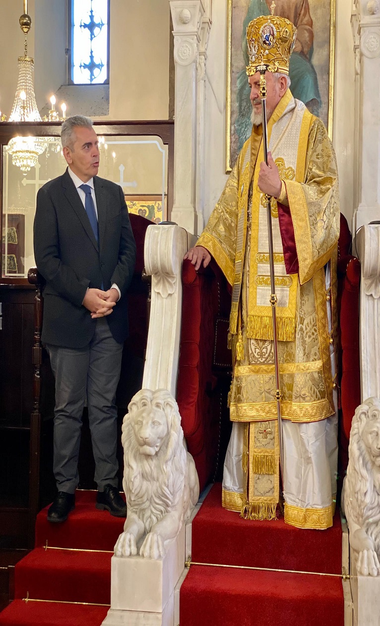 Μετά την αρχιερατική λειτουργία ο Μάξιμος Χαρακόπουλος και οι βουλευτές της ΔΣΟ είχαν την ευκαιρία στο αρχονταρίκι της ενορίας να συζητήσουν με τον πρόεδρο της εφοροεπιτροπής, καθηγητή πανεπιστημίου κ. Γιώργο Σταφανόπουλο και τον αντιπρόεδρο του Συνδέσμου Υποστήριξης Ρωμαίικων Κοινοτικών Ιδρυμάτων (ΣΥΡΚΙ) και διευθυντή του Ζωγράφειου Λυκείου κ. Γιάννη Δεμιρτζόγλου για ζητήματα που απασχολούν την ομογένεια της Κωνσταντινούπολης.