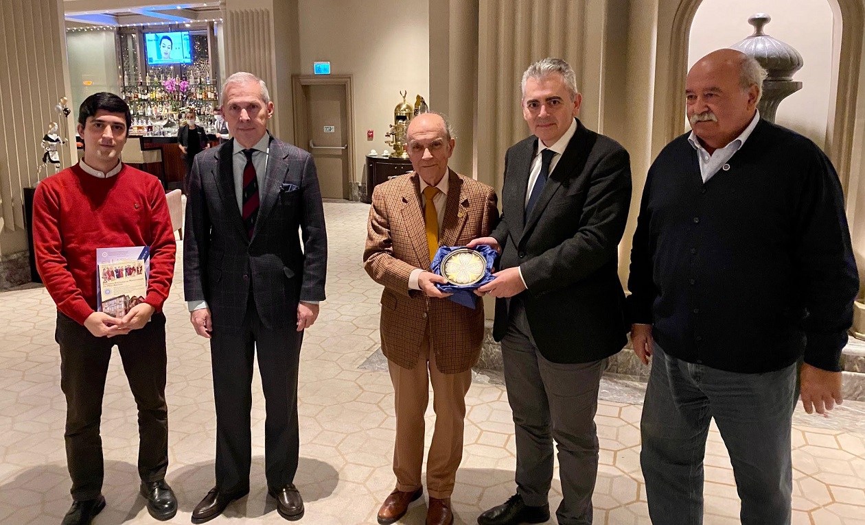 Τέλος, η αντιπροσωπεία της ΔΣΟ συμμετείχε στα εγκαίνια, στο Σισμανόγλειο Μέγαρο, της έκθεσης ζωγραφικής των Βρετανών εικαστικών Doug Patterson & Tim Vyner με τίτλο «Εικαστικά ταξίδια στο Άγιον Όρος», που πραγματοποιήθηκαν από τον υφυπουργό Εξωτερικών κ. Ανδρέα Κατσανιωτη, παρουσία της υφυπουργού Εξωτερικών κ. Ζεττας Μακρή.